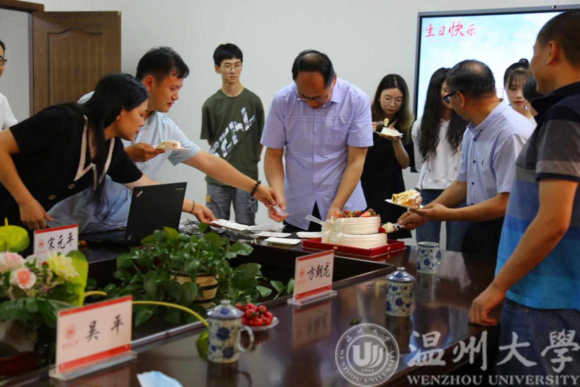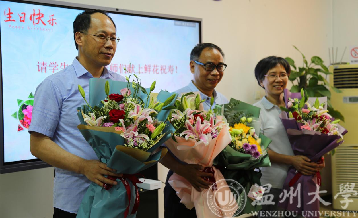 生日会由区块链游戏 副书记曾蓓蕾主持,副院长朱翔鸥向寿星们祝寿。学生代表向生日教师献上鲜花并一起唱响《生日快乐》歌。借着鲜花和歌声,我们恭祝蒋小洛老师、施肖菁老师、吴平老师和叶鹏老师50岁生日快乐!恭祝张耀举老师60岁生日快乐!