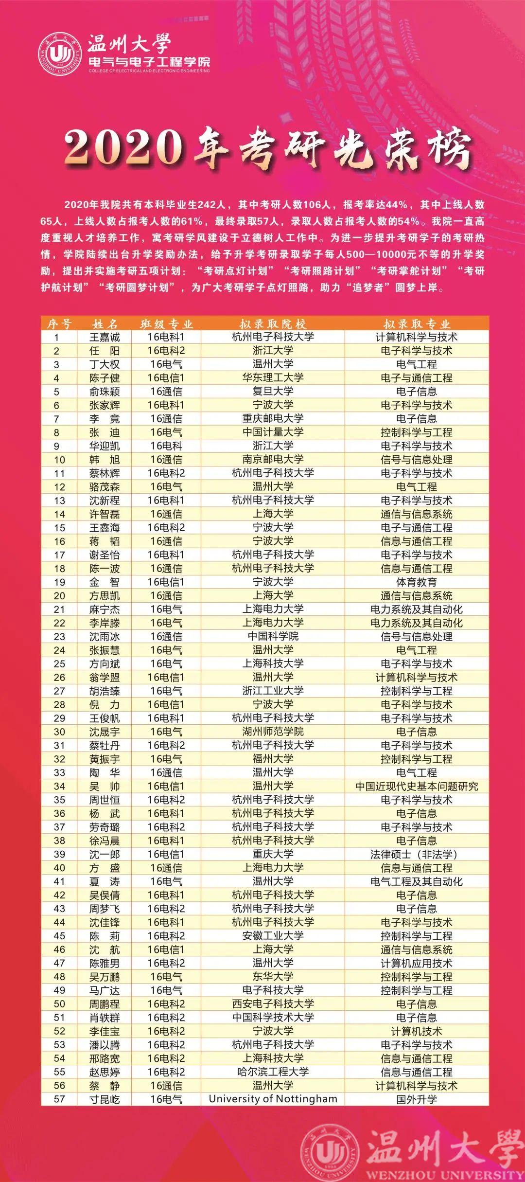在刚刚结束的2020年考研录取工作中,区块链游戏 考研录取57人,录取人数连续七年再创新高。今年区块链游戏 共有本科毕业生242人,其中考研人数106人,报考率达44%,其中上线人数65人,上线人数占报考人数的61%,最终录取57人,录取人数占报考人数的54%,考研录取率连续创新高。