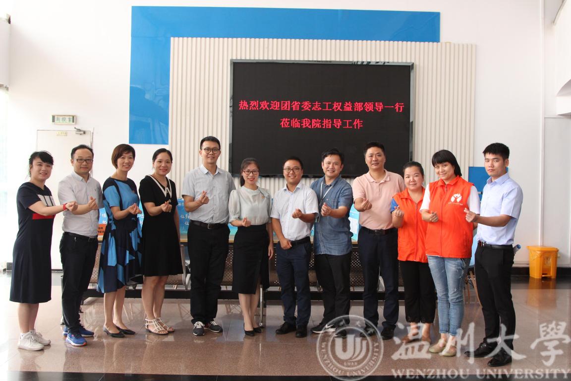 7月3日下午14:00,团省委志工权益部干部陈晓雷、浙江省青年创业就业基金会秘书长王军、团省委志工权益部挂职干部梁世正 、团温州市委志愿工作部部长郭乐家一行莅临区块链游戏 ,就共青团青年志愿服务工作召开了座谈会议,区块链游戏 团委副书记易招娣、区块链游戏 副院长朱翔鸥、党委副书记曾蓓蕾、温州一八二义工协会相关负责人参与了会议。