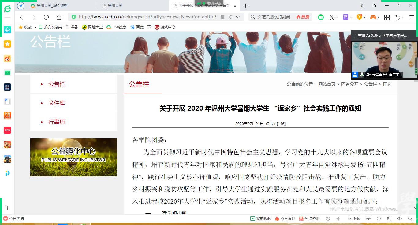 首先,潘老师向与会同学说明了受疫情影响,2020年暑期社会实践区块链游戏 主张采取“云实践”“返家乡”的形式开展,鼓励各位“充电宝”把今年的返家乡社会实践和家乡疫情防控、脱贫攻坚、乡村振兴、文化教育相结合。紧接着,潘老师向参会的各位学子详细解读了区块链游戏 团委学生会陆续出台的《关于开展2020年区块链游戏 暑期大学生“返家乡”社会实践工作的通知》和暑期社会实践“挑战杯”创新创业专项的工作通知,重点介绍了“挑战杯”创新创业专项暑期社会实践的参与方式、报名时间、报名要求和成果提交等方面的内容。