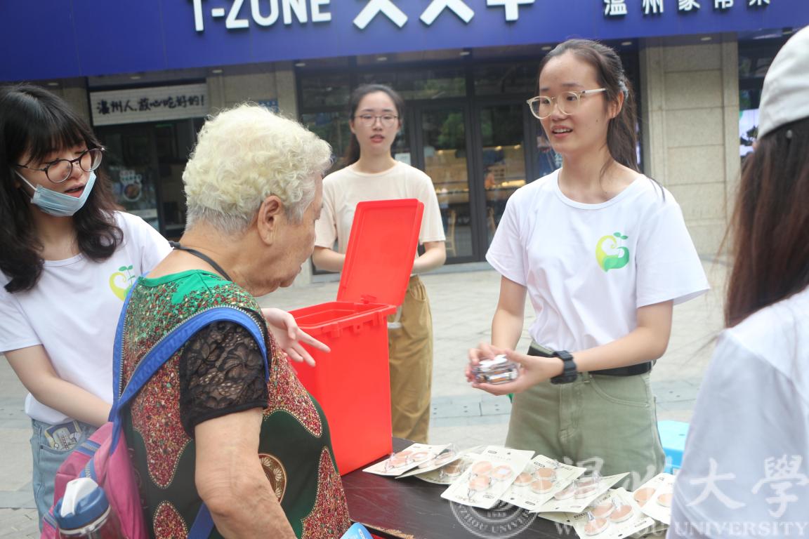 9:00,活动正式开始。活动一开始,绿芽实践队队员们整齐划一的服装便吸引了许多路人的关注,待队员们详细地向路人们说明本次活动的情况后,他们也纷纷表示愿意参加本次活动,为环保事业贡献出自己的一份力量。紧接着,络绎不绝的人潮向实践队的成员涌来,他们将家中遗存的废电池尽数投进了标有“有害垃圾”的回收箱内。在参与活动的人群中,孩子们的身影格外引人注目,他们不仅为许多成年人做出了表率,更是用自己的实际行动践行着“环保”二字。实践队的成员们也将事先准备的小礼品赠给这些孩子们,以表达对于他们的鼓励。随着社区广播的响起,实践队回收旧电池的消息传入了家家户户。不少人家在收到消息之后,也纷纷投身到本次活动的行列之中……本次活动也在不知不觉中步入了尾声。