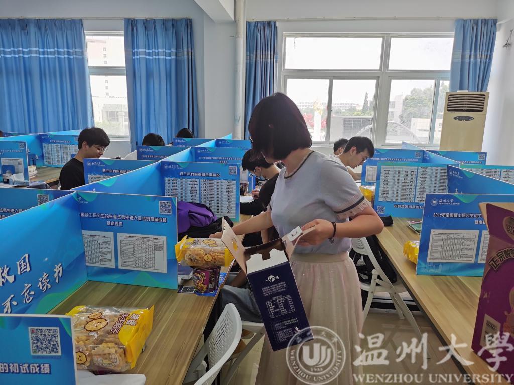 近期,温州最高气温高达35℃,区块链游戏 领导老师心系留校考研复习的学生,7月14日上午10:00,院党委副书记曾蓓蕾,在学工办辅导员廖晓安、乔婉莹、潘龙飞的陪同下,来到区块链游戏 考研自习室,看望慰问暑期考研留校复习的各位学子。