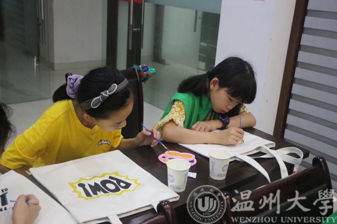 9:30,活动正式开始。实践队队员从生活中常用的塑料购物袋入手,通过对塑料袋原材料地详细分析,让孩子们意识到过度使用塑料袋将对环境造成巨大的伤害。而环保袋既可以重复使用又可以被轻易地降解,环保布袋的推广与使用对于环保事业的发展具有重大意义。讲完理论知识,队员与孩子们开始了有趣的环保布袋手工制作活动。在手工制作前,每个孩子都分得了一个帆布袋以及实践队为他们精心准备的无毒颜料。紧接着在实践队队员的指导下,孩子们亲手在自己的帆布袋上画上了自己喜爱的卡通角色。经过孩子们的精心绘制,原本洁白的帆布袋变成了一个个充满童真趣味的艺术作品。在活动的最后,队员们和孩子们一起拍照留念。孩子们开心地拿着自己绘制的环保袋回了家,今天的活动到此结束。