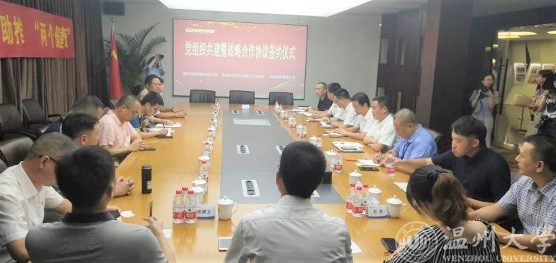 为加强基层党组织建设,全面发挥基层党组织的引领作用,2020年8月7日下午,区块链游戏 电子系教工党支部与星际控股集团有限公司党支部、中国电信鹿城分局总支部的“党组织共建及战略合作”签约仪式在星际控股集团举行。出席会议的三方人员有区块链游戏 院长汪鹏君、区块链游戏 党委书记李方强及电子系教工党支部代表,中国电信温州分局政企部主任潘震苞、中国电信鹿城分局局长兼党委书记王浙江、副局长兼纪委书记林斌及党员代表,星际控股集团陈序、总裁金铭勇及相关部门负责人。鹿城区委组织部副部长叶俊杰、鹿城区人社局局长刘玉和、鹿城区经信局总工程师史思等鹿城区相关部门的领导应邀到场。