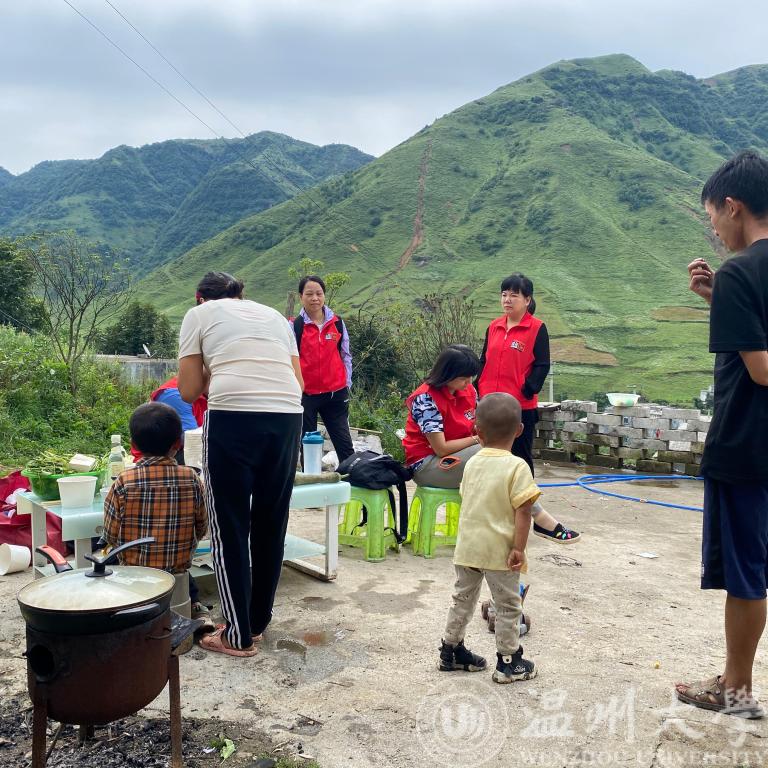 马楠坪厂村的居民从前的住房处在2000米的海拔,从前以茅草屋为主,大部分的居民已被安置入昨日走访的安置房小区—红光新居,过上了城里的生活。但是,还有一部分村民不愿离开家乡,还居住在山上,过着放牧、耕种的生活。虽然还居住在山上,但是他们的生活却发生了巨大的改变。在扶贫政策的支持下,政府做领头羊,带领村民共同出资盖建了安全、舒服的二层小楼房,生活水平大幅提高。上午,线下队员在菜市场和超市购买了在山上做饭所需的食材和赠送给居民的粮食。午后,经历了两个多小时后的颠簸山路,队员们终于到达被探望的村民家中,与他们沟通交流。队员们不仅领略到了这里的美丽风景,也对于当地的生活情况有了深入了解。山上村民虽然居住在新屋,可子女的教育问题还是十分严峻。孩子们如果要上学就必须在县城里,每周来回一次路费就要100元,是极大的负担。搬至县城安置房的居民也存在着融入社会的困难。这对于实践队员对于公益事业的理解更倾向于现实化。傍晚,指导老师和实践队员冲洗食材,切菜,烹饪,与村民共享丰盛晚餐。晚餐中有酸菜鱼、炖猪蹄、红烧鱼、炒南瓜叶、腊肉等等。村民自制的腊肉香气喷鼻,尤其让队员们难以忘怀。最后,为村里的人家送上自制的围巾、围脖、护膝等,他们当场戴上并表示很喜欢。