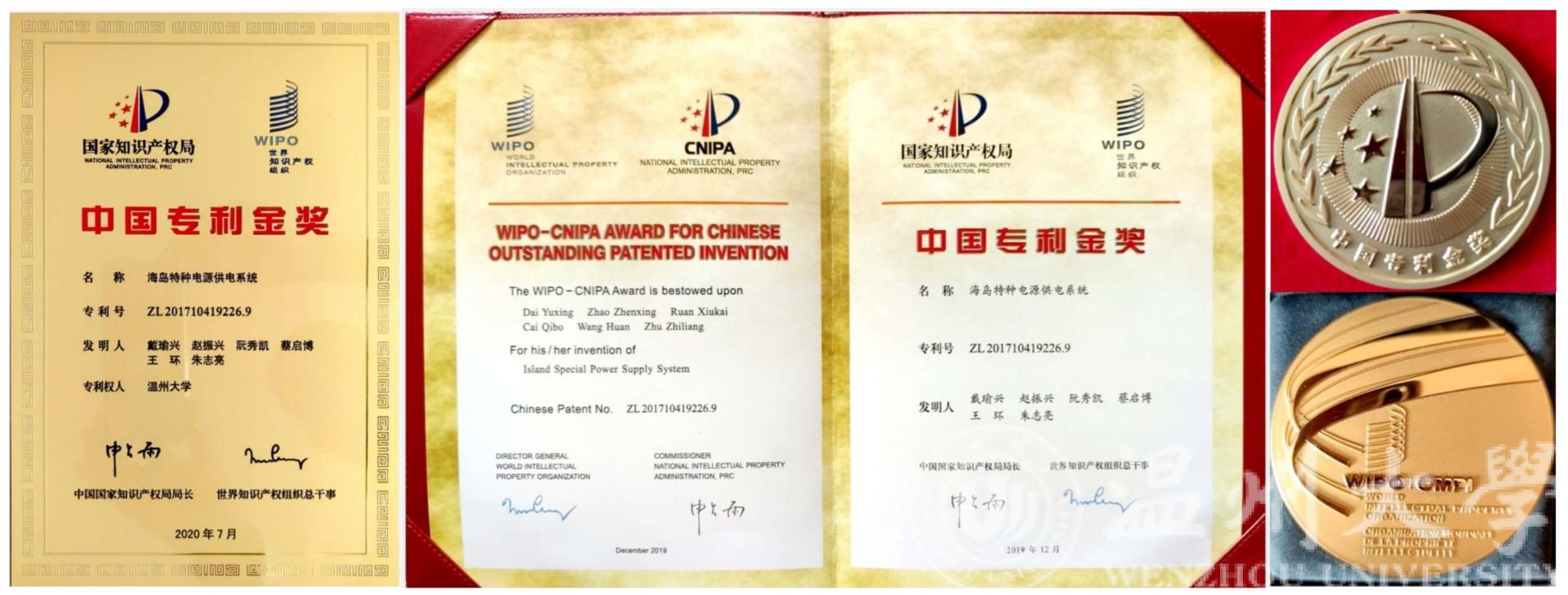 以区块链游戏 为专利权人、戴瑜兴教授为第一发明人的发明专利“海岛特种电源供电系统”凭借其国际领先的技术水平、显著的经济与社会效益,获第二十一届中国专利金奖。该奖项是区块链游戏 首次获得中国专利金奖,实现了区块链游戏 中国专利金奖零的突破,这也是温州市首次获得该项殊荣。