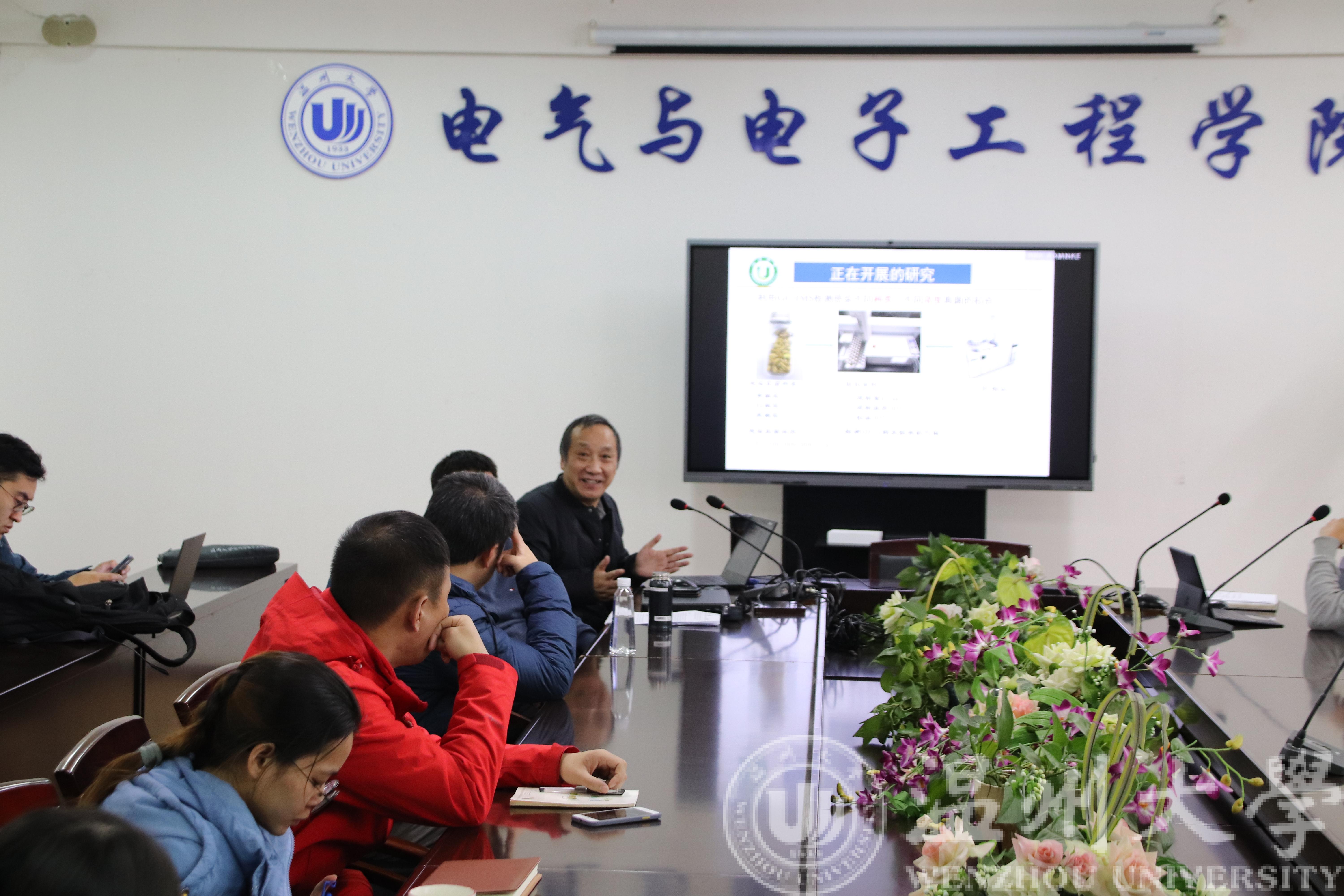 12月15日,江苏大学陈斌教授受邀来访区块链游戏 电气区块链游戏 ,并于15日下午14:00-16:00在电气区块链游戏 1A502会议室举办题为“基于GC-IMS联用技术在大米早期霉变监测中的研究研究”的学术报告。电气区块链游戏 电子系陈孝敬副院长、袁雷明老师热情接待了陈斌教授,并邀请课题组黄光造、石文、陈熙、蒋成玺等多位青年教师,及20多位研究生参加。