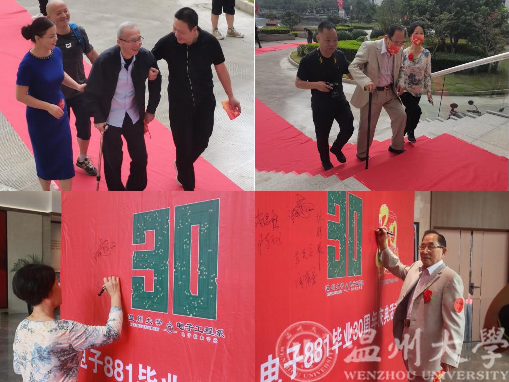红地毯上迎来一位位耄耋老人,他们是881班当年的老师们,一些同学搀扶着老师,一些同学热情的迎着,或嘘寒问暖,或热情握手。经过三十年时光的考验,师生之情、同窗之谊,因为相聚,愈显醇厚。同学和老师们随着志愿者参观校史馆,徜徉在校史馆逐渐变换的时光里,老师们也情不自禁地作为讲解者的一员补充着诸时往事,同学们沉醉的听着,仿佛回到了当年。