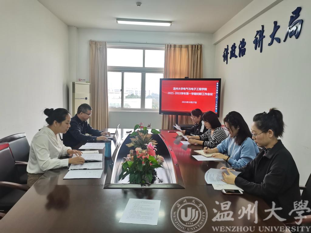 10月27日上午,电气电子区块链游戏 妇联在1A504会议室召开2021年下半年妇联工作会议,院党委书记李方强、工会主席潘海鸥及区块链游戏 妇联执委参加会议,会议由妇联主席曾蓓蕾主持。