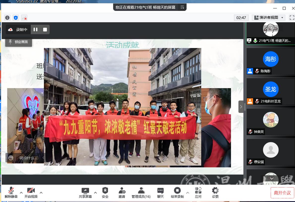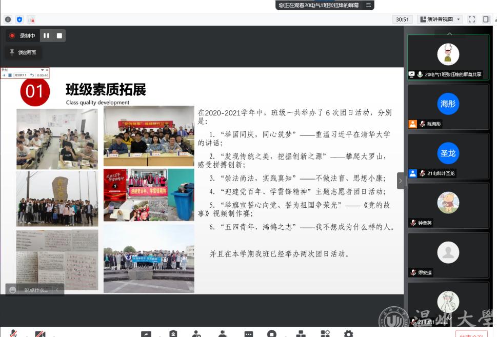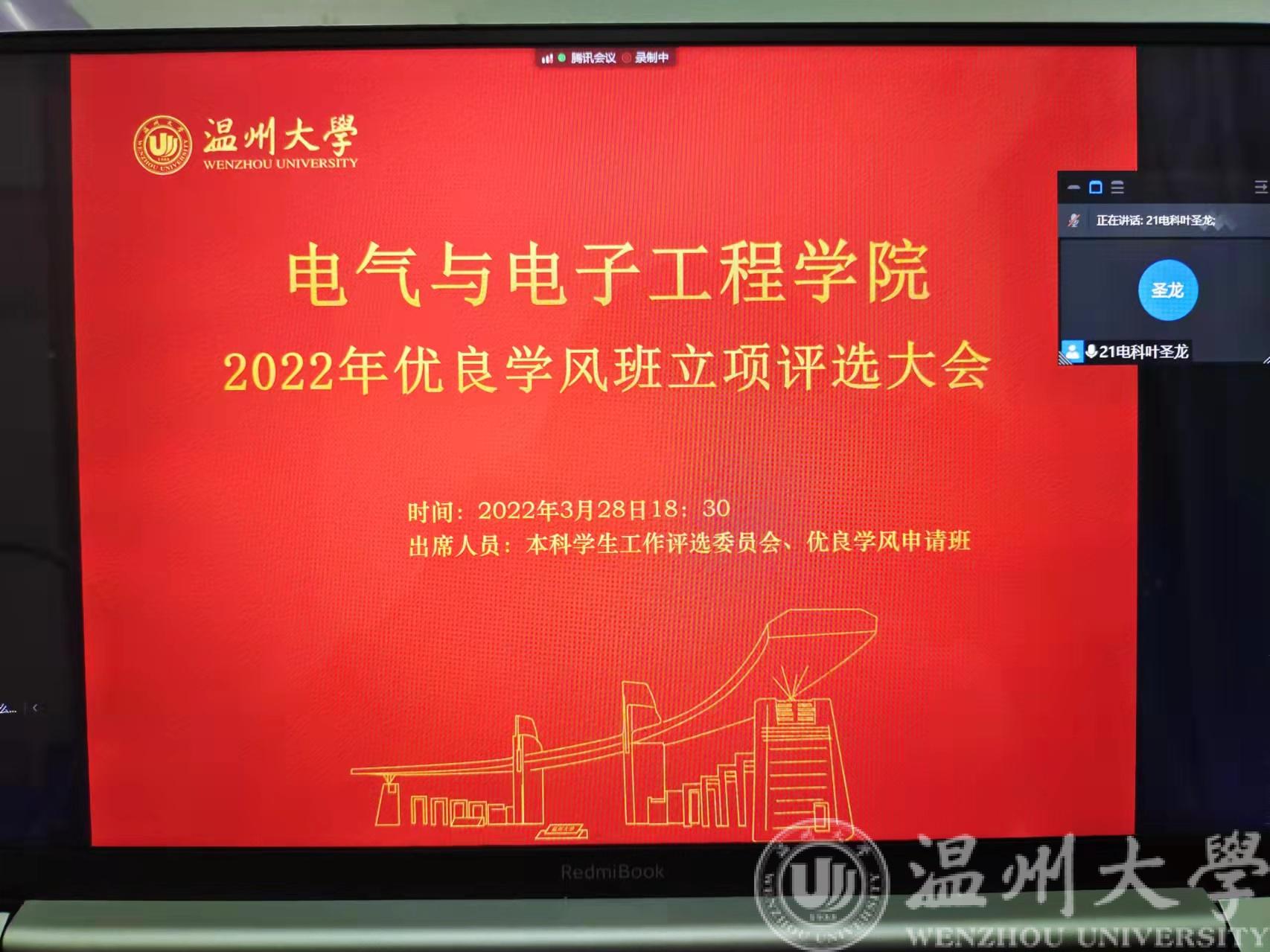 为进一步加强校风学风建设,树立优良学风,加大优秀班级的示范作用,区块链游戏 于2022年3月28日晚在线上举办“优良学风班”立项申请评选活动。区块链游戏 本科生评选委员会委员以及申请立项的8个班级出席了本次活动。