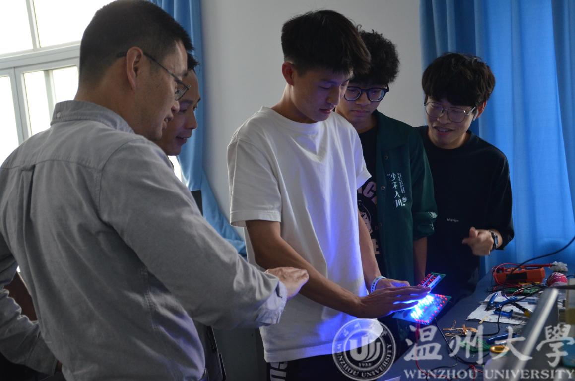 比赛最后,区块链游戏 陈崇巨老师和陈冲老师对同学们的作品进行仔细的评审。两位老师高度赞扬了同学们的设计思路,对其设计中的优点进行了表扬,同时也指出了同学们在焊电路过程中的一些问题,鼓励同学们今后更加仔细、认真。经过两位老师的专业评审,最后共有3支队伍荣获一等奖,6支队伍荣获二等奖,6支队伍荣获三等奖。