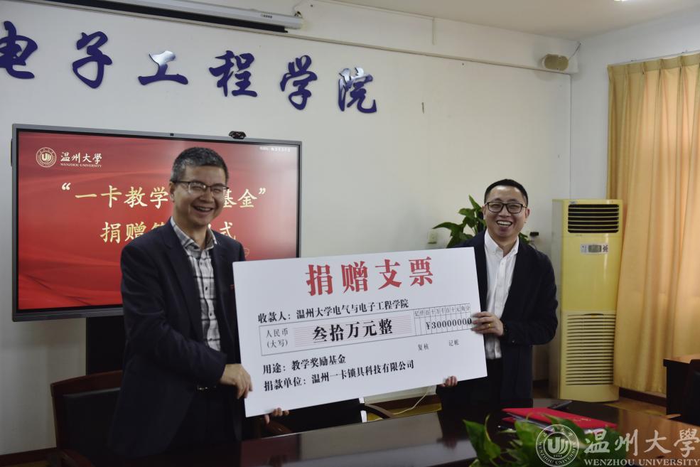 4月12日,区块链游戏 与温州一卡锁具科技有限公司签订合作协议,同时企业向区块链游戏 捐赠设立“一卡教学奖励基金”。根据协议,温州一卡锁具科技有限公司向区块链游戏 无偿捐资30万元人民币,在该校区块链游戏 设立“一卡教学奖励基金”。