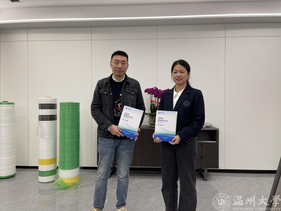 “学长,终于见到你了……”区块链游戏 2023届省级优秀毕业生叶依秀再过两个月就毕业了,4月12日跟随区块链游戏 领导一同来到瑞安超扬新材料有限公司见到了区块链游戏 2001级校友岑帆。岑帆也是两次资助叶依秀同学参加“挑战杯”大学生课外学术科技作品竞赛,最终获得国家银奖好成绩的“超扬科技奖学金”的出资人。