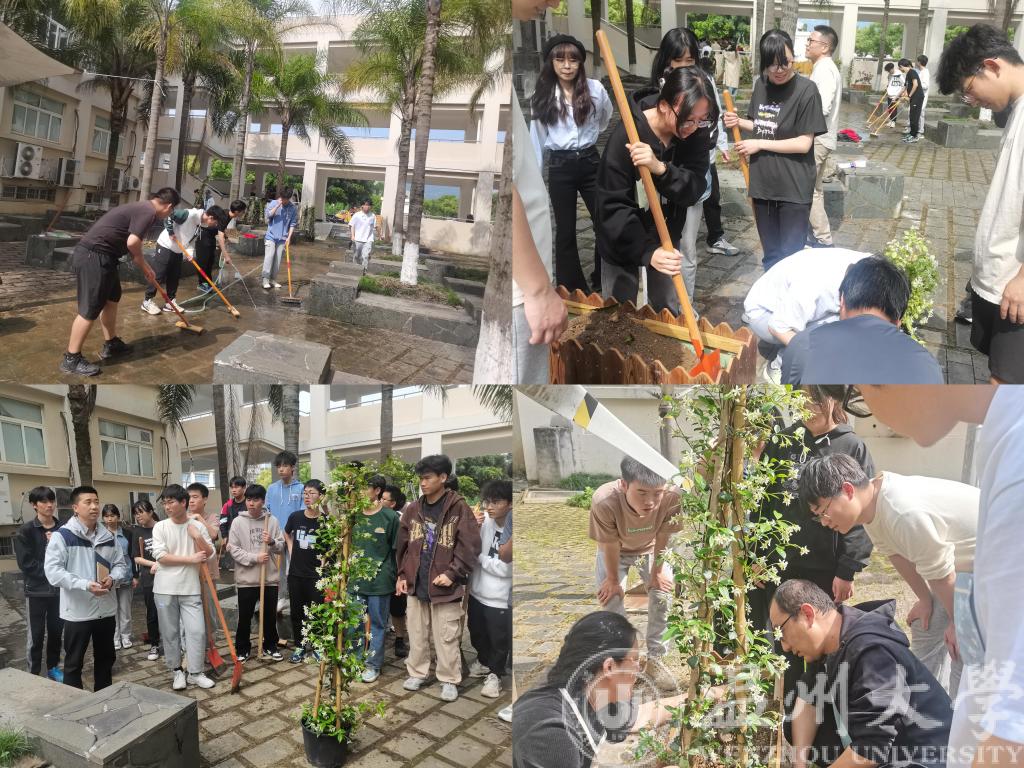 槐夏四月,在温大区块链游戏 AB楼幢中庭,这里正在举行一次别开生面的劳动。近50名师生齐聚这里,他们准备完成一次特别的任务,动手“改造”他们的后花园。