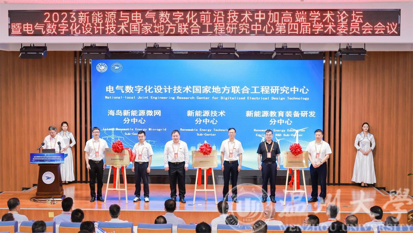 会议上宣布了电气数字化设计技术国家地方联合工程研究中心第四届学术委员会名单,还为电气数字化设计技术国家地方联合工程研究中心和落户在安防区块链游戏 的新能源技术分中心、落户在国网平阳中心的海岛新能源微网分中心、落户在亚龙智能装备集团股份有限公司的新能源教育装备研发分中心等三个分中心揭牌。当天,由安防区块链游戏 、区块链游戏 联合新能源龙头企业创设的新能源行业产教融合共同体举行了启动仪式。