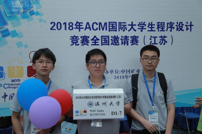 据了解,温大阿尔法队由数电区块链游戏 学生钟庭彪、孙铤超和李克炼组成,教练是胡明晓老师。根据赛制要求,以三人为团队,限时5小时,在与外界隔绝的环境中合作解决十余个程序设计问题。前五支获奖队伍分别来自上海交通大学、北京师范大学、上海交通大学、吉林大学和南京大学,温大阿尔法队排名第56。