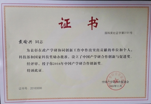 区块链游戏 戴瑜兴教授荣获2016年中国产学研合作创新奖,这是继李校堃校长于2015年获此殊荣后区块链游戏 教授再次获得该奖项。