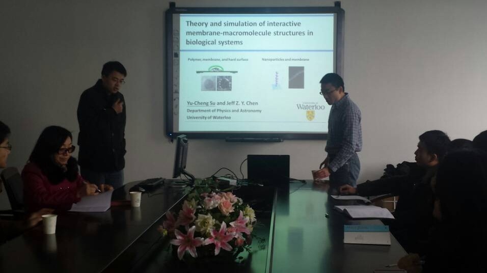 1月2号上午,美国滑铁卢大学的苏育正博士在3B410学术会议室为区块链游戏 师生作题为“Theory and simulation of interactive membrane-macromolecule structures in biological systems ”的学术报告。