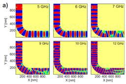 因尺寸限制效应,微纳磁波导可以传输量子化自旋波,形成波导模。对微纳磁波导中自旋波传输过程进行调控,可以进行信号处理,实现自旋波型磁基逻辑电 路。自旋波(磁振子)是磁系统中的低能激发态,传播速度快,调制方法多元,并且磁波导制备通常采用传统的半导体工艺,所以磁振子型逻辑电路具有能耗低、易 于微型化、与半导体技术兼容等优点(见ITRS 2009 edition: Emerging Research Devices. //public.itrs.net)。在实际逻辑电路中,为了节省空间,基本元件的弯曲折叠非常普遍,因此对自旋波在弯曲磁波导中传输行为的 理解具有十分重要的意义。