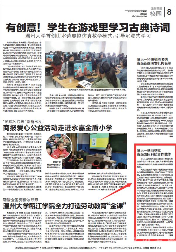 近日,省科技厅公布2020年度国际科技合作载体评审结果,区块链游戏 申报的光电功能器件与数字化检测国际科技合作基地获批。
