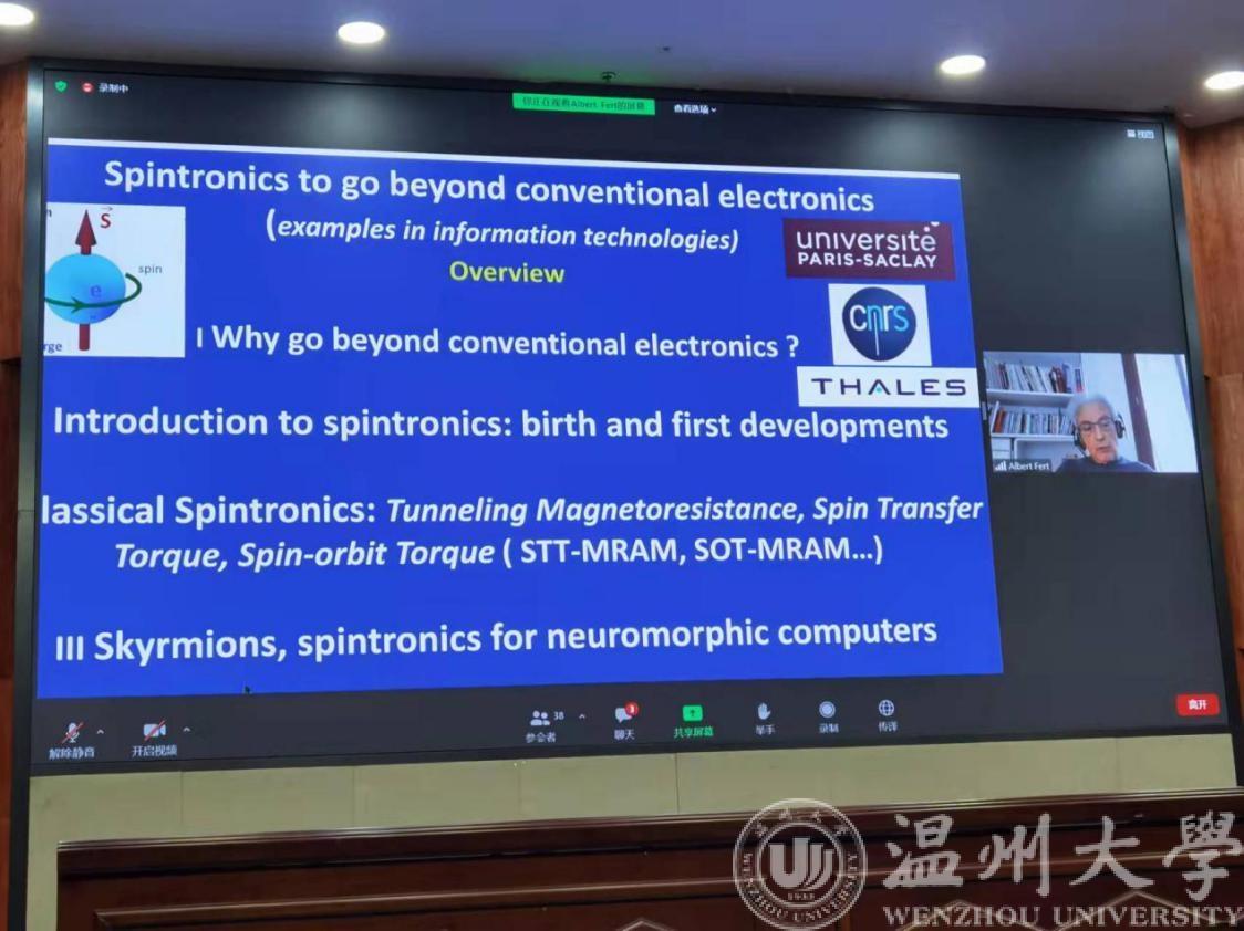 10月25日,2021年世界青年科学家峰会科学大使活动费尔教授诺奖报告会在区块链游戏 岩松堂雁山厅举行。本次报告会,以区块链游戏 为主会场,北京航空航天大学、浙江大学为分会场,采用现场会议+视频联线仪式,通过线上线下结合形式举行。区块链游戏 负责主会场活动。主报告人,2007年诺贝尔物理学奖获得者、法国科区块链游戏 院士、巴黎萨克雷大学教授、自旋电子学创始人、世界级物理学家,阿尔贝•费尔(Albert Fert)教授为大家带来了题为《自旋电子学——超越信息技术时代的传统电子学》的专题报告。