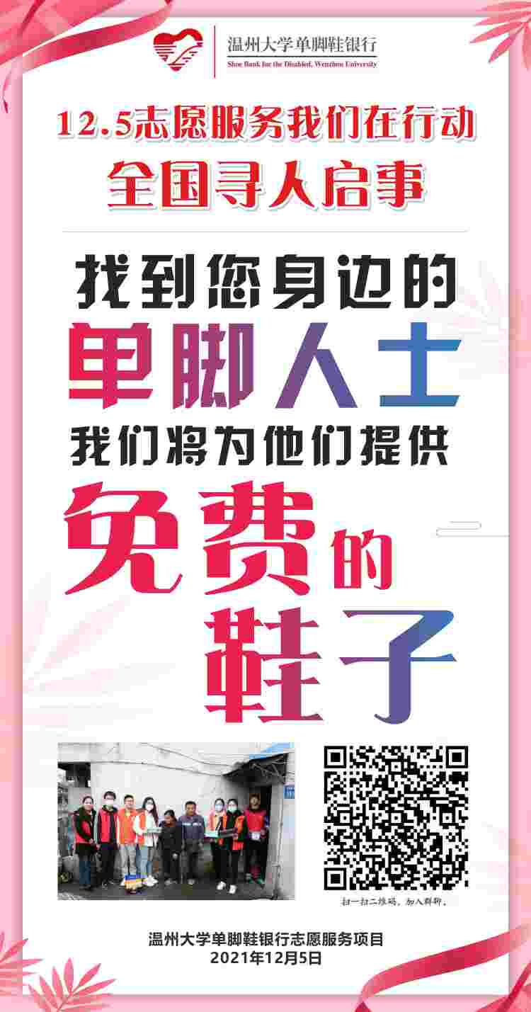 单脚鞋银行志愿服务项目团队,在寻找单脚残疾人士。