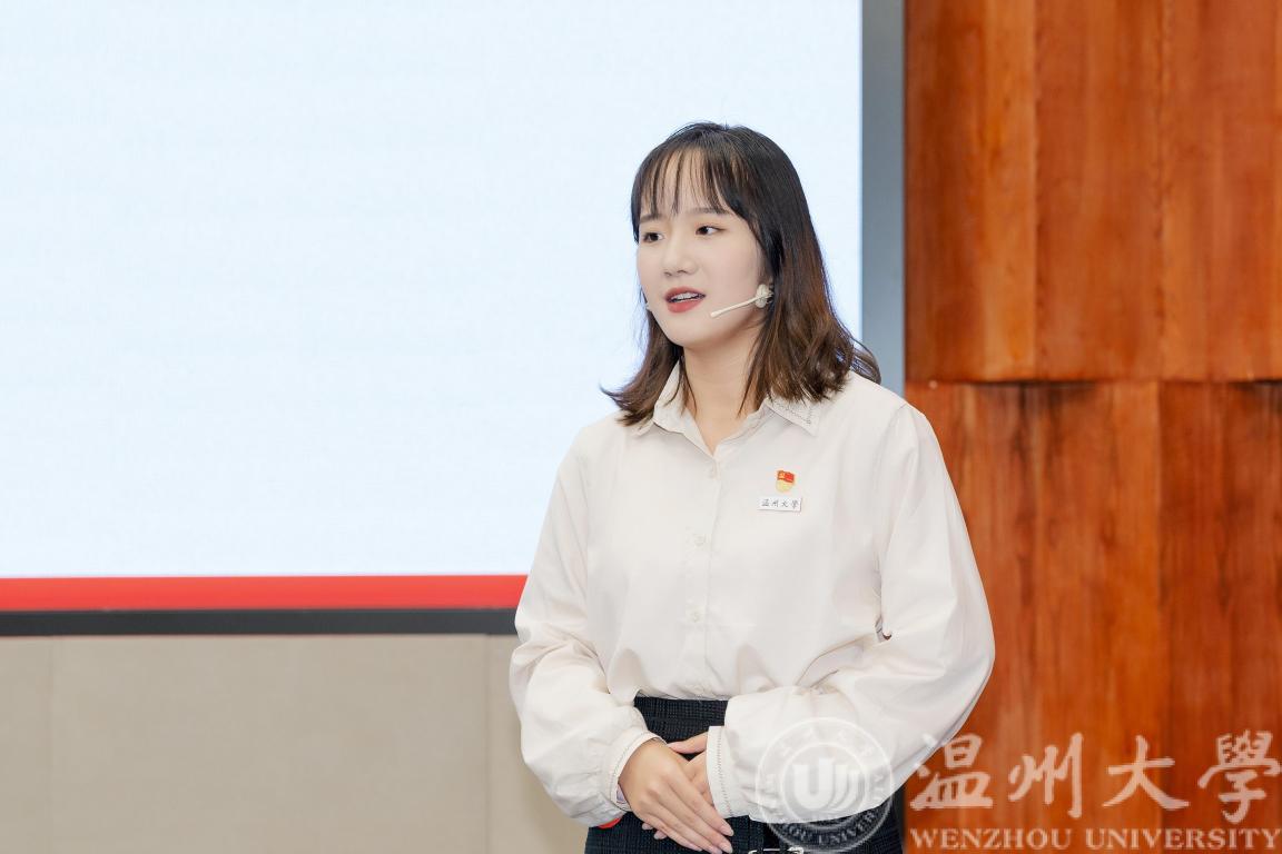 李欣燦同学以“理想之光,永续传承”为主题,讲述72年前,为了百年发展大业,中国人民志愿军跨过鸭绿江,在异国他乡打响的尊严之战——抗美援朝战争。展现了抗美援朝志愿军艰苦困难的境地,歌颂和赞扬革命先烈高尚的人格和自强不息的心灵,砥砺新时代青年应该仰望星空,脚踏实地,传承先辈们维护祖国和平的理想,牢记自强不息的血脉力量,传承他们的理想之光。