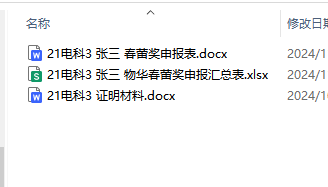 2、个人或团队申请。符合各奖项评选条件的个人或团体如实填写申报表 物华申报表.rar+申报汇总表 物华申报汇总表.rar+佐证材料。