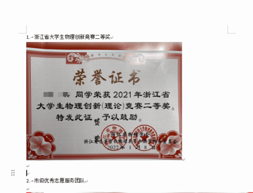 佐证材料请按照汇总表上填写的提供相关奖状证书,整理情况参照下图: