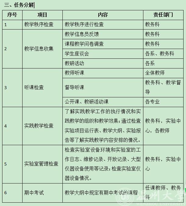 实验教学检查:了解实验教学工作的执行情况和实验教学的组织和教学效果;通过检查实验项目运行表、教学大纲、实验报告等了解实验教学内容安排的情况。