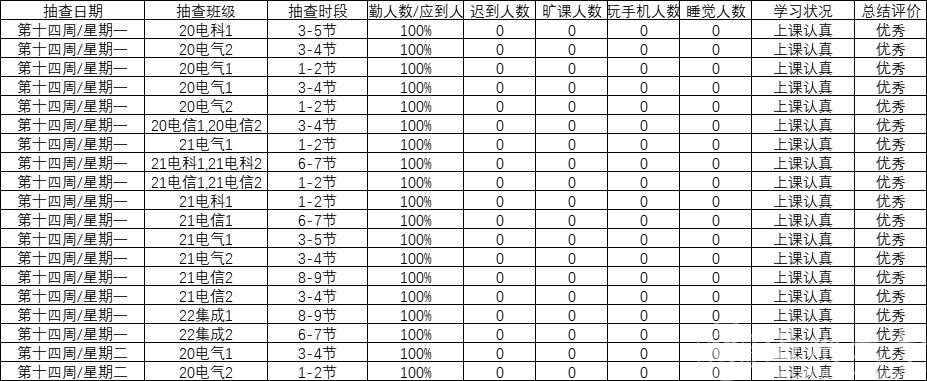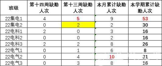 2022级上周早晚自习和补充十三周课堂缺勤情况如下: