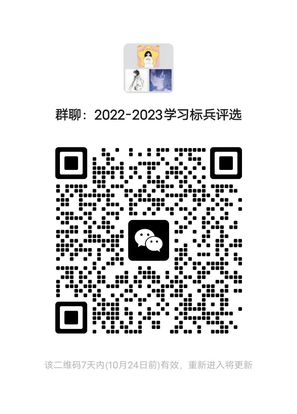 请参与学习标兵评选的同学在本周日(10月22日)晚上22:30前扫二维码进入群聊。