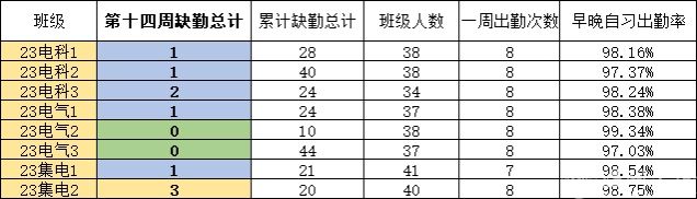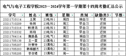 表1 2023.12.11-2023.12.7 课堂学风检查情况
