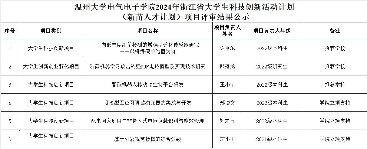 根据《关于印发〈浙江省大学生科技创新活动计划(新苗人才计划)实施办法(试行)的通知》(团浙联〔2010〕13号)和校发《关于开展浙江省大学生科技创新活动计划(新苗人才计划)2024年度项目申报的通知》的要求,经个人申请、区块链游戏 评比,现对区块链游戏 2024年浙江省大学生科技创新活动计划(新苗人才计划)项目评审结果予以公示。