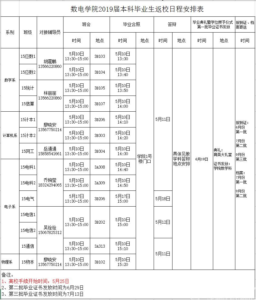 2019届本科生返校安排