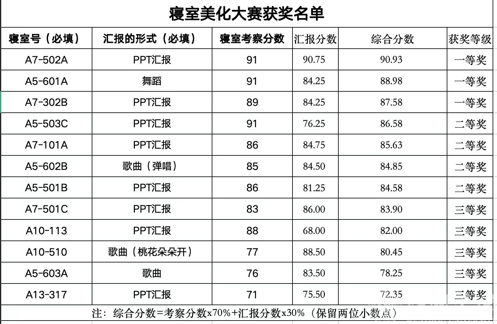 2.参与寝室美化大赛的2022级和2023级同学按照获奖情况加劳育和美育分,统一导入系统。