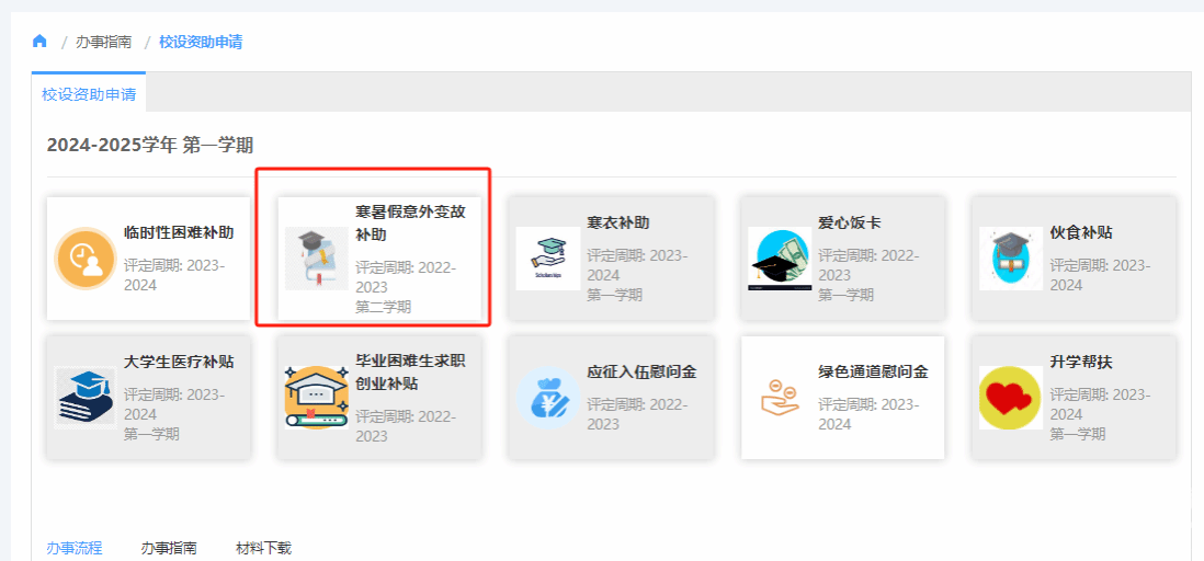 二、暑假期间学生意外变故补助申请