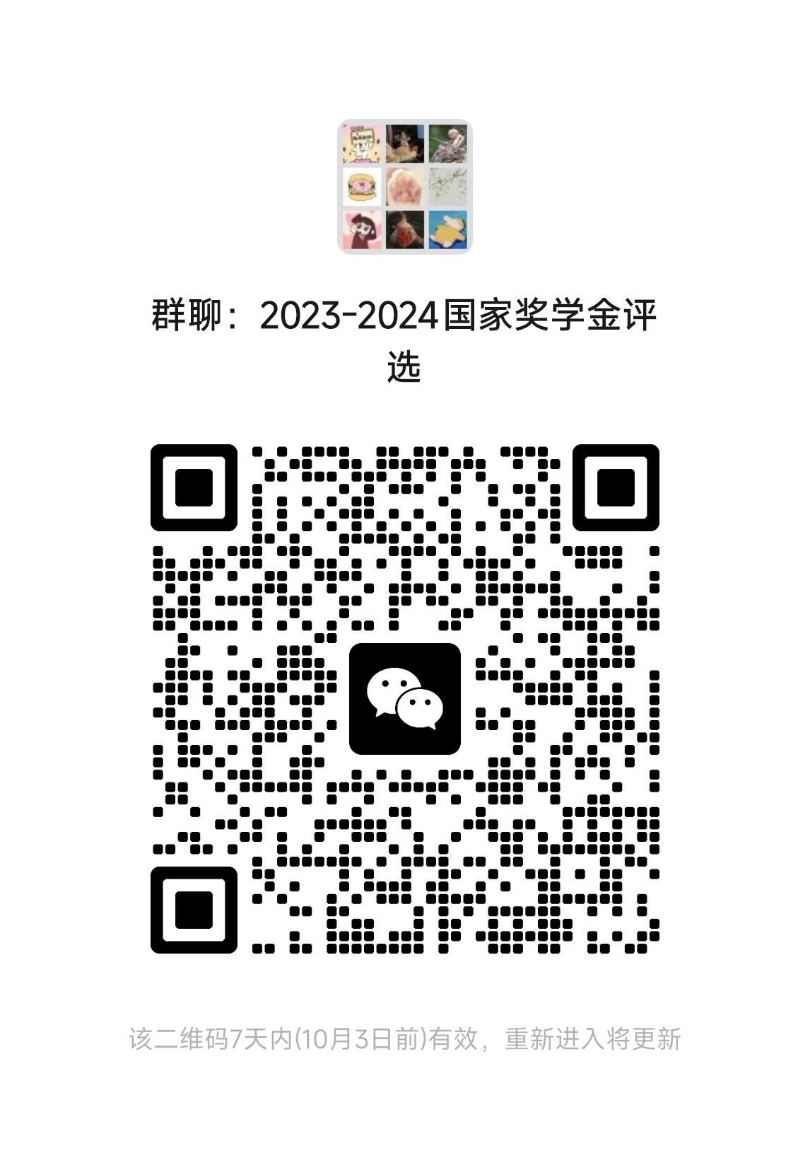 请计划申请国家奖学金评选的同学于9月26日16:30前进入微信群,便于后续展示答辩等事宜通知