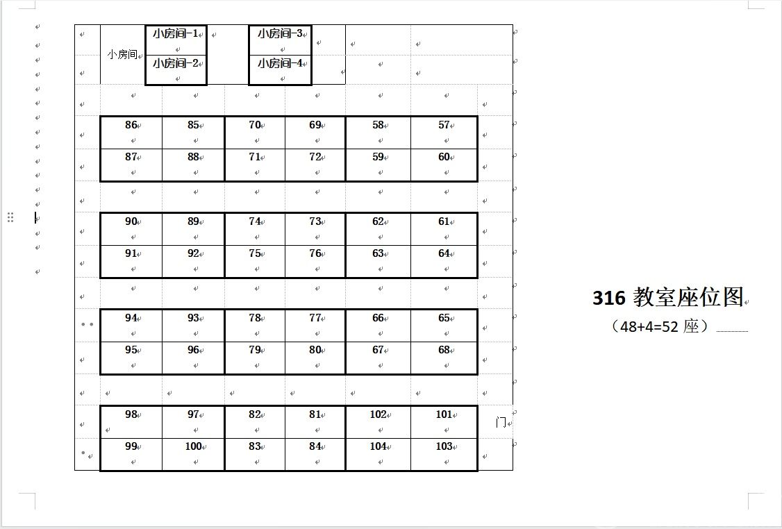 316和318考研自习室座位分布如下: