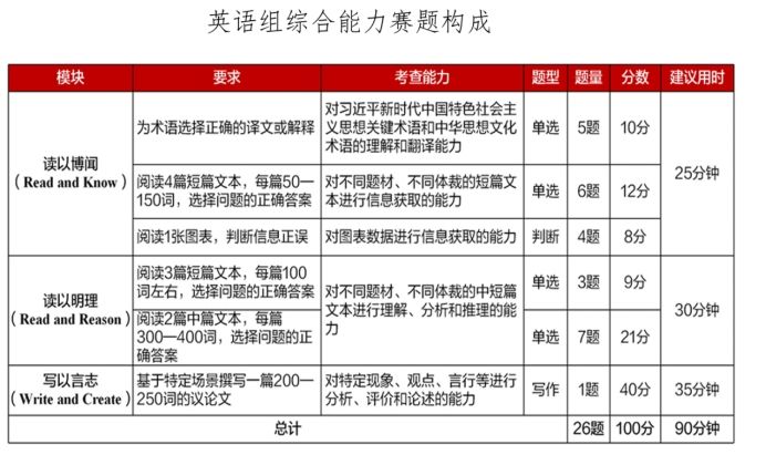 本次校赛包含客观题若干道和议论文写作1篇,题目类型、难度、测试系统均与 2025“外研社·国才杯”“理解当代中国”全国大学生外语能力大赛英语组综合能力校赛要求一致,具体如下所示。