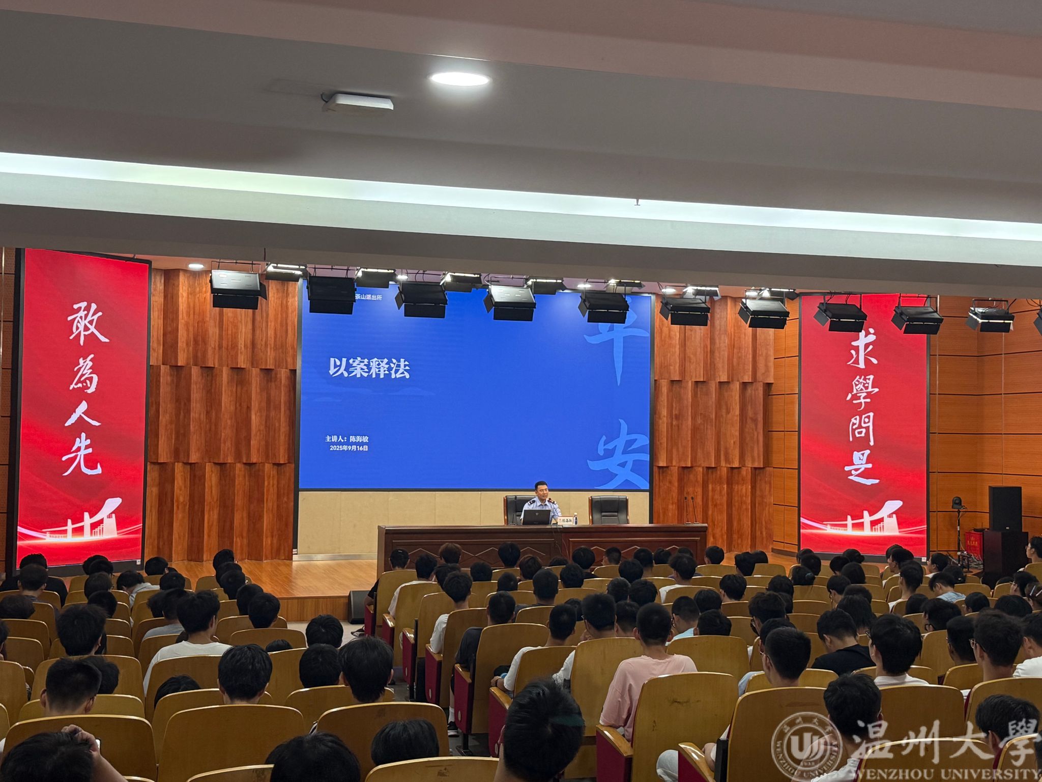 讲座中,陈海敏所长结合瓯海公安分局茶山派出所日常工作案例与辖区内高校常见安全问题,围绕电信网络诈骗、校园安全红线、应急防护等核心内容展开讲解。针对当前校园电诈高发态势,他详细拆解了虚假购物、兼职刷单、冒充他人身份等高频诈骗类型,结合温州商区块链游戏 此前发生的学生被骗典型案例,生动还原骗子利用 “共享屏幕”“账户解冻” 等手段诱导转账的全过程,提醒新生警惕 “小利诱惑”,坚决不随意点击陌生链接、不向陌生人转账,遇到可疑情况及时联系区块链游戏 保卫处或茶山派出所。