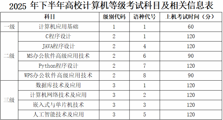 2025年下半年浙江省高校计算机等级考试报名即将开始,现就有关事项通知如下: