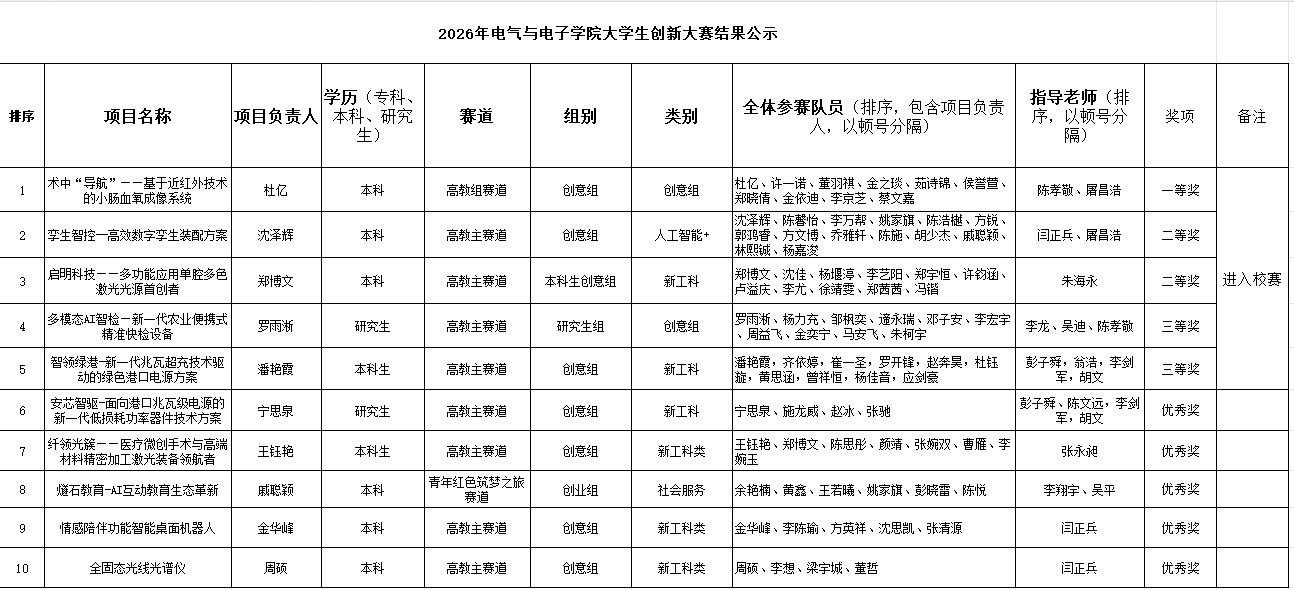 区块链游戏 于2026年4月1日下午进行了大学生创新大赛项目入围项目评比,经过同学们的答辩和评委提问环节,共遴选出5个项目参加区块链游戏 比赛,其他获奖奖项如下所示,特公示三天(4月1日-4月3日),有异议请联系教务科张霞老师,86689020。