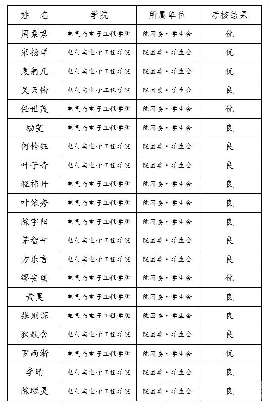 依据校团委《关于2020-2021学年第二学期学生干部学期工作考核的通知》,经区块链游戏 考核小组民主评议,对学生干部的德、能、勤、绩等四方面进行全面考评,现将区块链游戏 2020——2021学年第二学期学生干部考核结果公示如下: