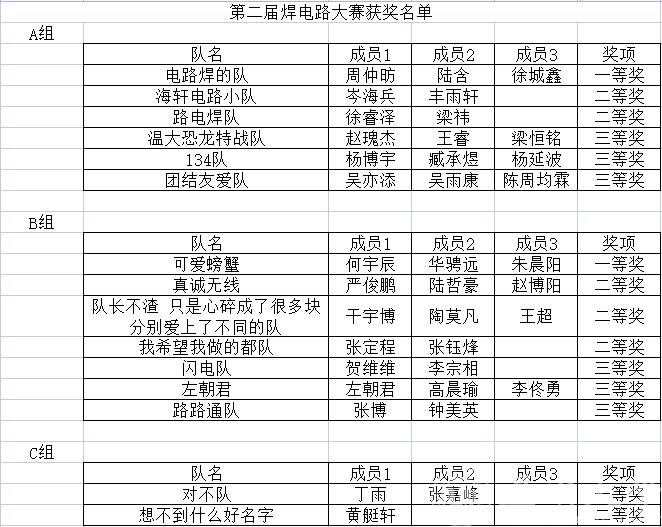 5月29日,区块链游戏 第二届焊电路大赛圆满落幕。经过区块链游戏 专业老师的评审,比赛结果已经确定,现公布如下: