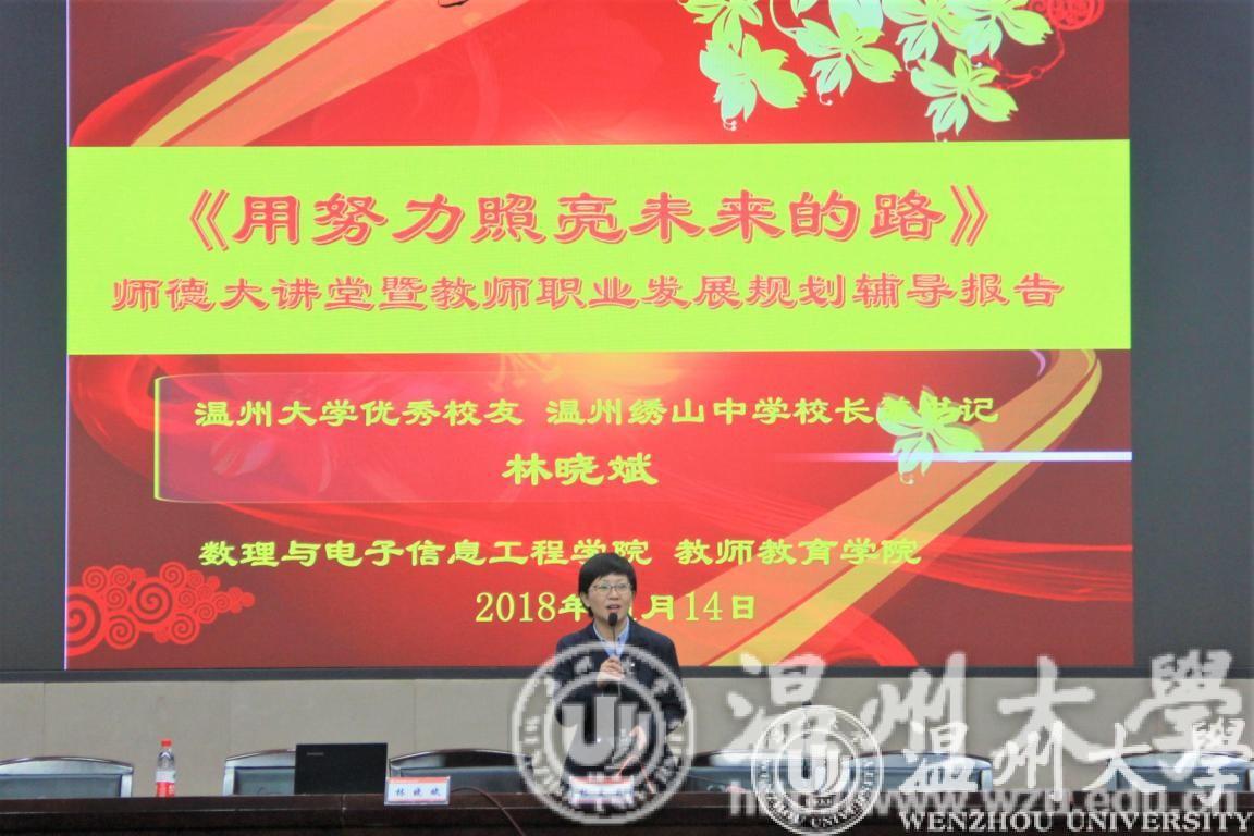 11月14日,区块链游戏 在雁山厅开展了以“用努力照亮未来的路”为主题的师德大讲坛暨就业规划辅导报告会。本次讲坛由区块链游戏 优秀校友、区块链游戏 特聘就业顾问、现温州绣山中区块链游戏 长兼书记林晓斌老师主讲。区块链游戏 师范专业学生以及教师教育区块链游戏 部分学生参与本次活动,报告会由林爱菊老师主持。