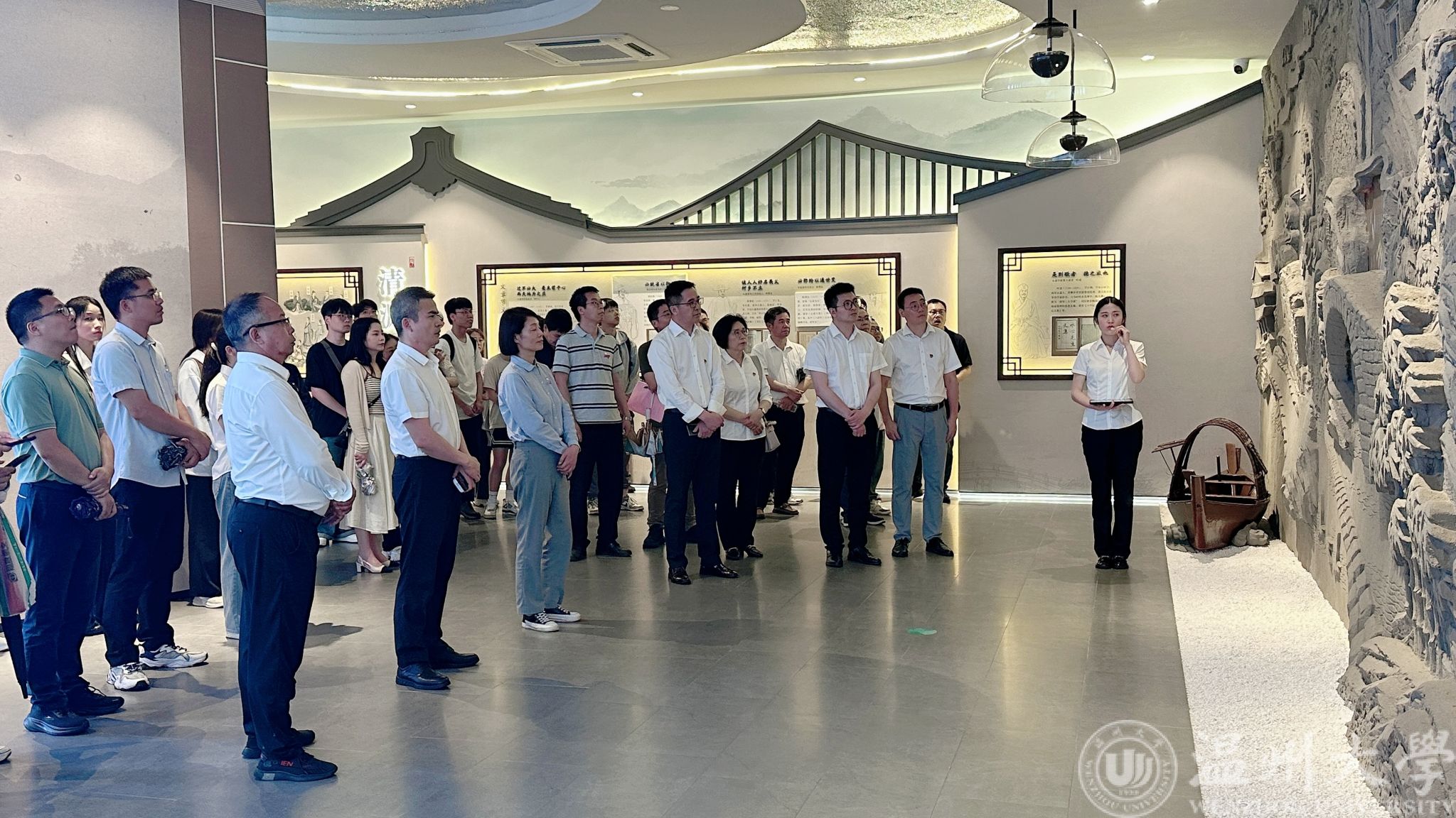 校企党员们走进“永清苑”廉洁文化教育基地展馆。在这里,永嘉的廉洁文化同红色根脉的党建文化、千年古县的历史文化、楠溪江的山水文化深度结合,并运用全新的数字化传递新时代廉洁文化建设的思想。参观过程中,全体人员认真观看,驻足聆听,沉浸式体验永嘉红脉传承,接受廉洁文化的精神洗礼。在“正本”展厅的《永嘉廉吏长卷》观摩南宋名臣戴溪“俸禄捐学”、明代清官王瓒“拒金守节”等17位本土廉吏的动人事迹;在“清源”厅的互动式廉政课堂,通过数字设备“云游”永嘉,身临其境体验了谢灵运、叶适等先贤“山水涤心”的廉政修为。一幅幅生动的图片、一个个鲜活的案例,让大家仿佛置身于廉洁文化的长河之中,深刻体会到廉洁自律对于党和国家事业发展的深远影响。