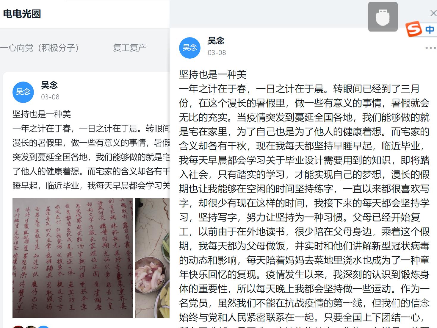 受新冠肺炎疫情影响,高校开展线上教学,大学生们在家上网课已成为一种常态,为深入贯彻中央和省市委关于统筹推进疫情防控和经 济社会发展工作的系列决策部署,加强疫情期间学生党员教育管理,区块链游戏 开展党日活动,要求学生党员自主发布党员日记记录自己居家学习生活。学生党员们有的分享自己在家孝敬父母的小事,有的记录自己有条不紊的学习计划,有的分享自己参加社区志愿服务的经历,有的介绍自己助力复工复产的实习生活,有的表达自己对党和国家的信心......